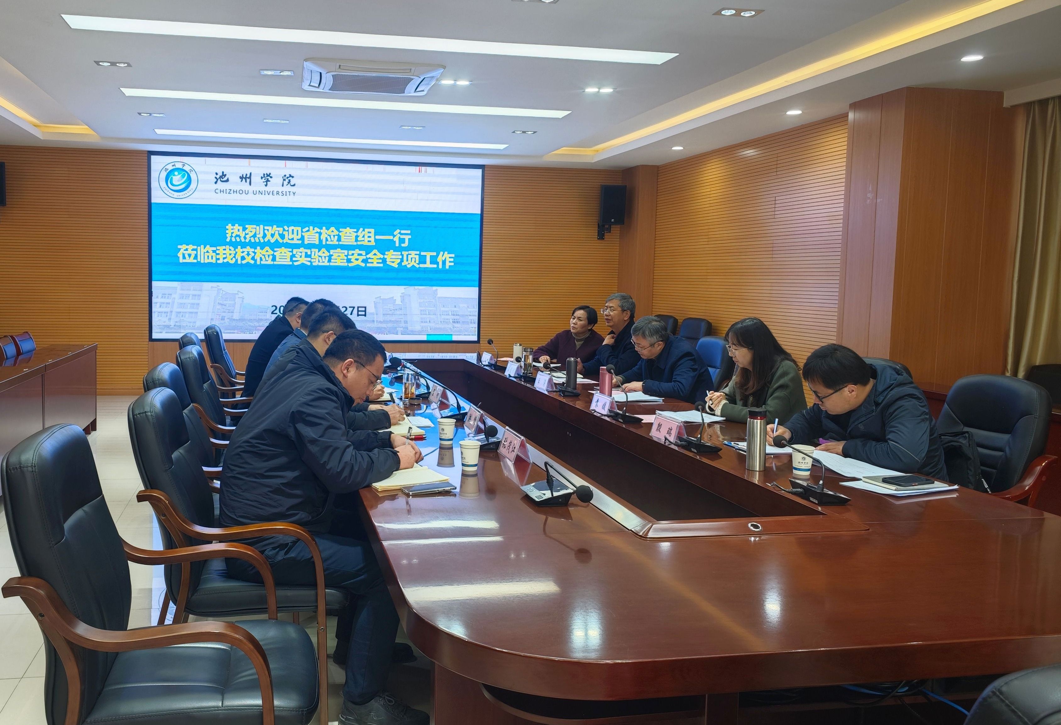 王涛传达了省教育厅对高校实验室安全现场检查工作的要求、工作重点和工作程序,听取了我校实验室安全管理总体情况汇报。