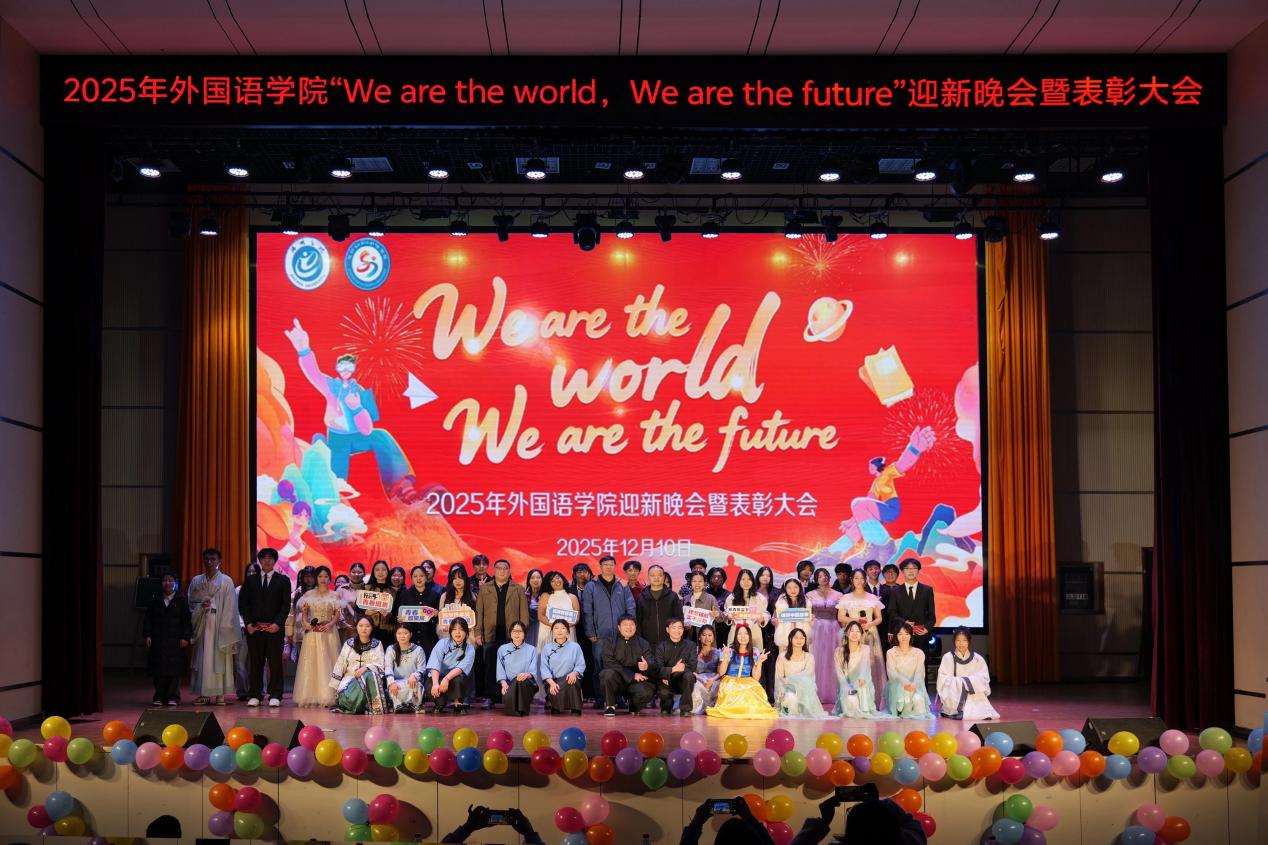 12月10日晚,无码人妻AV一二区二区三区外国语学院“We are the world,We are the future”迎新晚会暨表彰大会在博古大礼堂举行。学院党政班子、各办公室负责人及外国语学院师生齐聚一堂,共享视听盛宴,见证优秀学子表彰时刻。